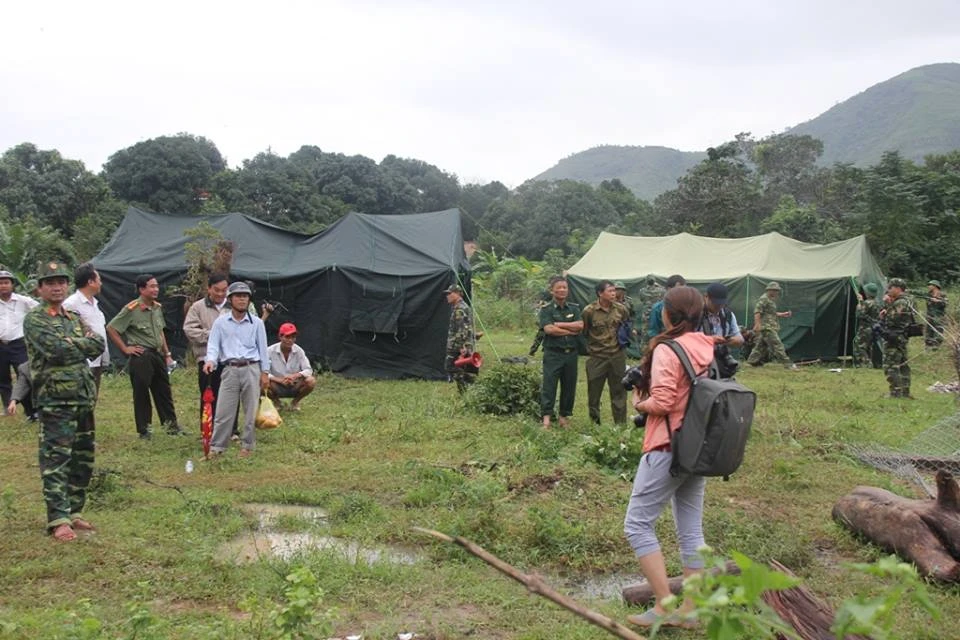 Lán trại của các lực lượng chức năng đã được dựng từ sớm, tập trung lực lượng tìm kiếm hai nạn nhân còn mất tích