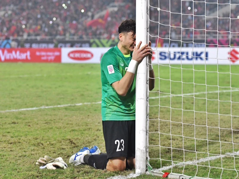 Tan trận chung kết lượt về AFF Cup 2018 trên sân Mỹ Đình, trong lúc đồng đội ăn mừng nhảy múa ở giữa sân thì mỗi thủ môn Văn Lâm ôm cột khung thành cầu nguyện và khóc nức nở…