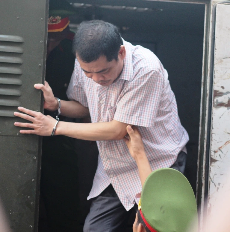 Bị cáo Nguyễn Thanh Hoài, Trưởng phòng khảo thí và Quản lý chất lượng giáo dục, Sở GD&ĐT tỉnh Hà Giang được đưa đến tòa.