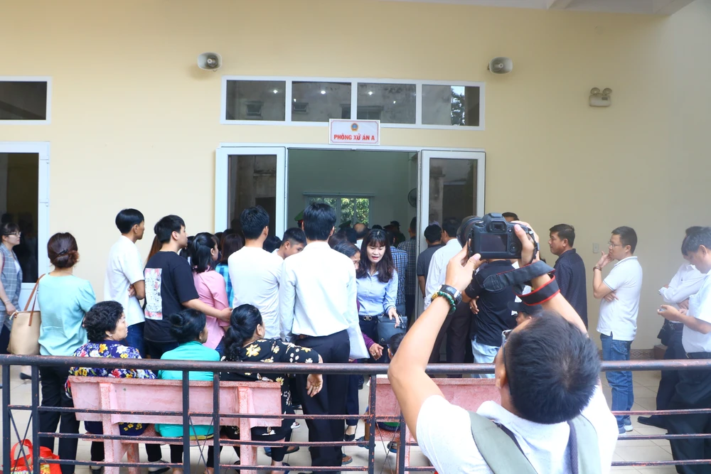 Từ rất sớm rất đông người thân của các bị cáo và phóng viên đến tham dự phiên tòa. Ảnh: LÊ ÁNH