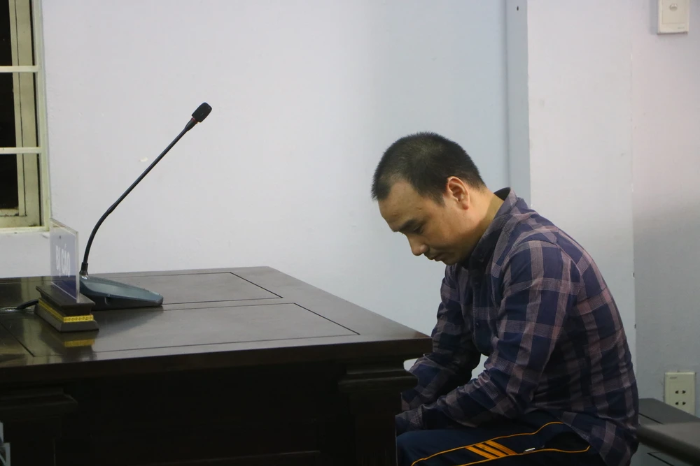 Bị cáo Trần Đình Trung chỉ gục mặt nhìn xuống. Ảnh: LÊ ÁNH