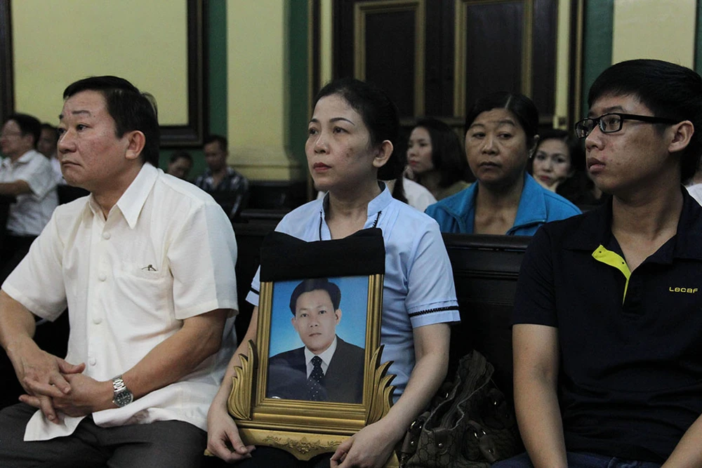 Bà Dương Thị Thảo, vợ nạn nhân Nguyễn Văn Chín, cùng người thân tham gia phiên tòa. Ảnh: HOÀNG GIANG