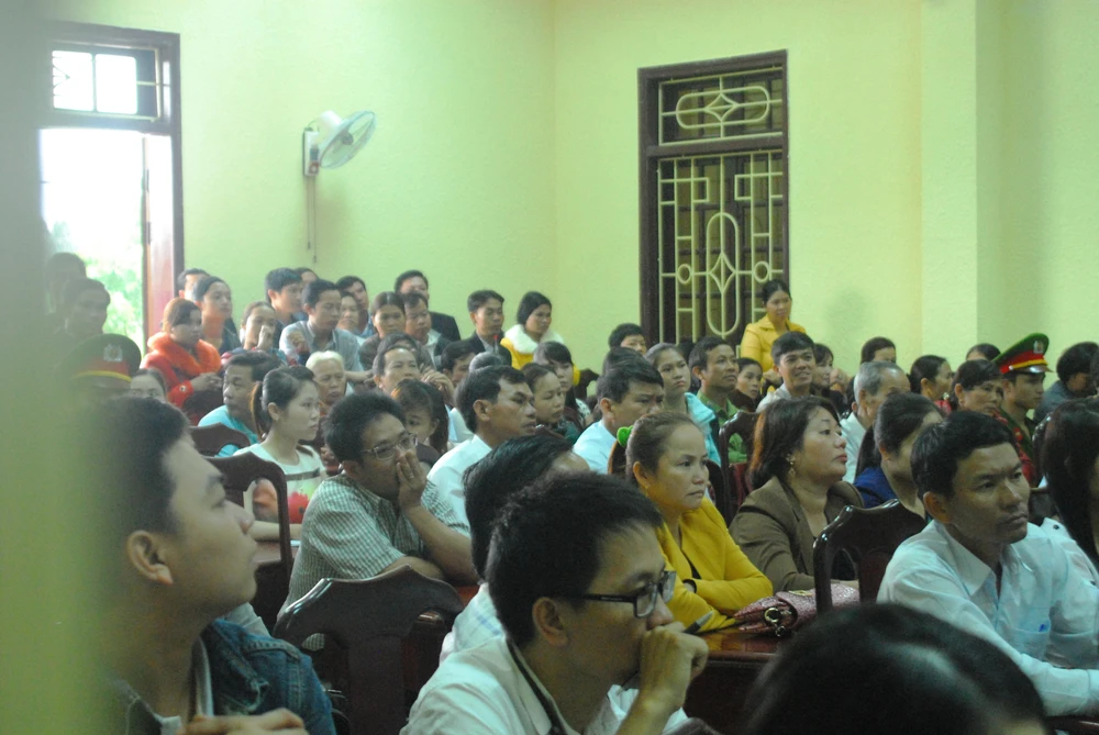 Phiên toà đã thu hút sự quan tâm của đông đảo người dân. Mọi người tập trung về theo dõi phiên toà tại trụ sở TAND tỉnh Quảng Trị chật kín, một số người phải đứng để theo dõi phiên toà.