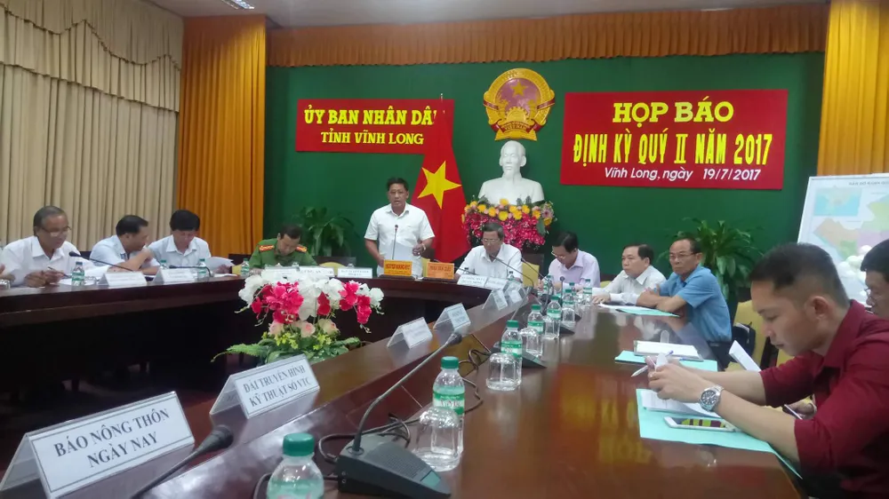 Chiều 19-7, UBND tỉnh Vĩnh Long tổ chức họp báo định kỳ quý II-2017 để thông tin tình hình kinh tế-xã hội trên địa bàn tỉnh, đồng thời giải đáp những vấn đề mà báo chí đã đặt ra trong thời gian qua cũng như hỏi trực tiếp tại cuộc họp báo.