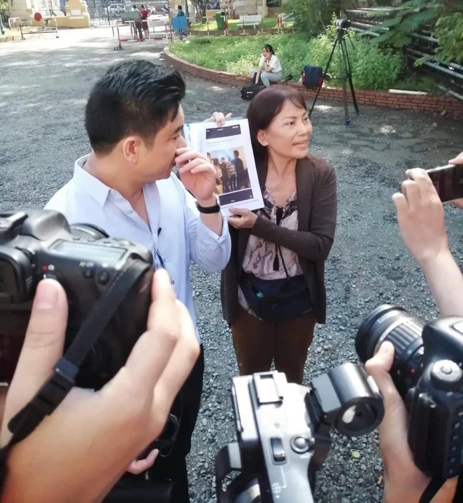Người phụ nữ này cầm tấm hình (phóng lớn) chụp ông Thái và vợ. Liền đó ông Thái giới thiệu với báo chí: “Đây là mẹ của Ngọc”... Ảnh: HY