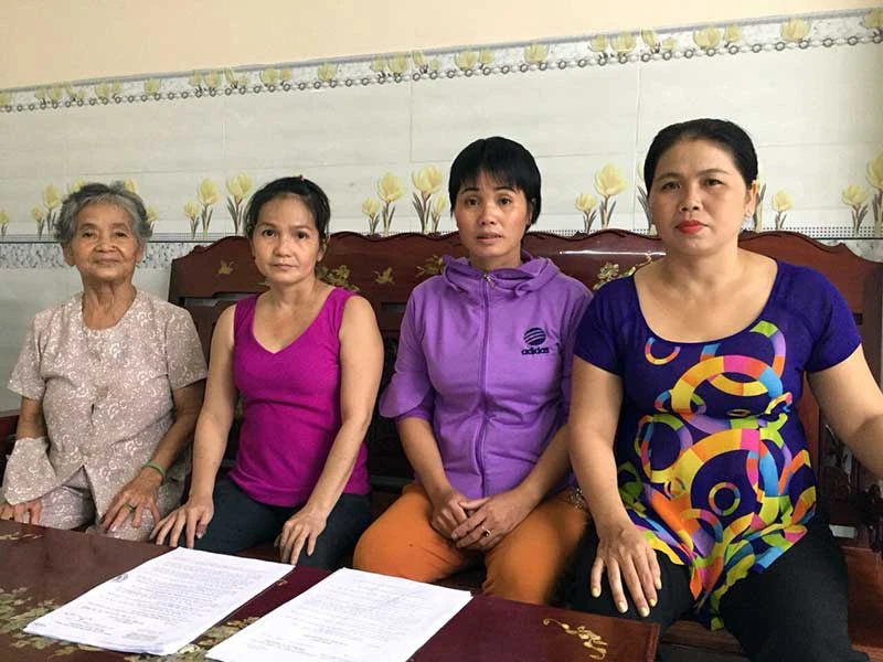 Bốn mẹ con bà Em trình bày sự việc với PV. Ảnh: YC