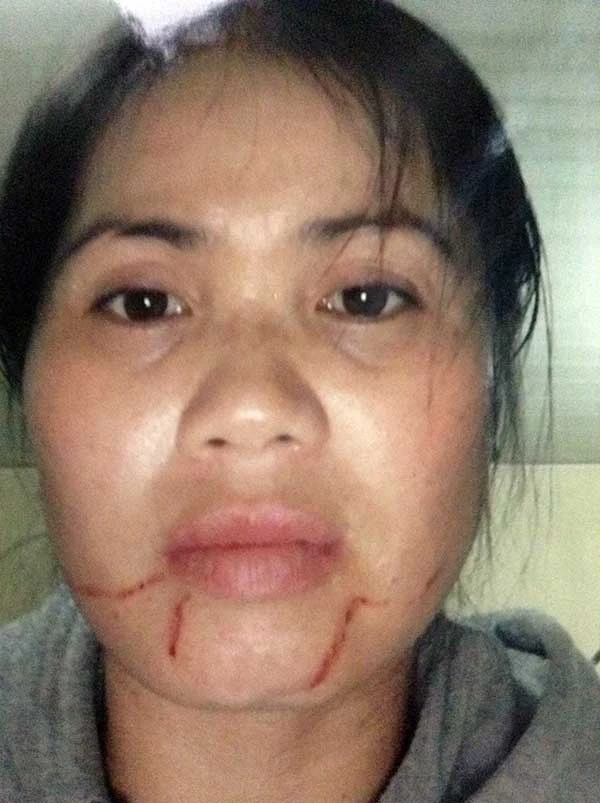 Vết thương trên mặt em gái bà Em thể hiện rõ có ba vết thương. Ảnh: YC