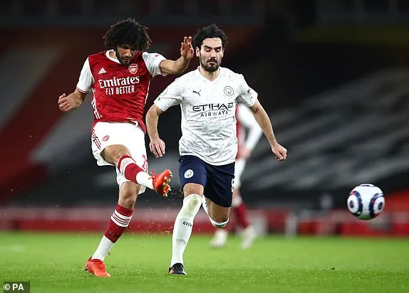 Gundogan có pha sút xa đầu hiệp hai, nhưng đã bị thủ môn của Arsenal kịp bay người cản phá. Ảnh: PA.