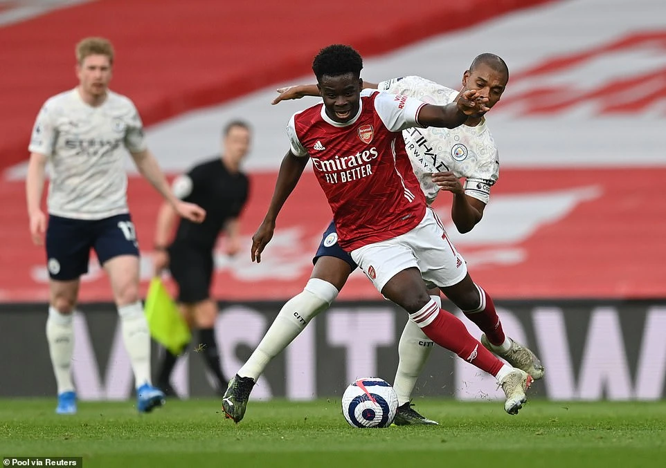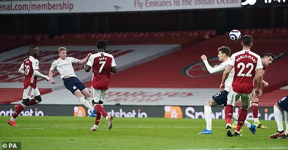 Từ tình huống đi bóng của Grabiel Jesus trong vòng cấm, bóng được trả về cho Cancelo. Hậu vệ người Bồ Đào Nha bình tĩnh thực hiện động tác giả để đánh lừa hậu vệ của Arsenal, tiếc rằng pha vẫy má ngoài của Cancelo lại đưa bóng đi chệch cột dọc.
