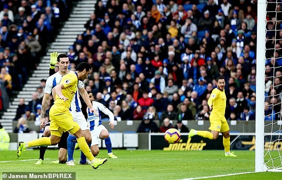 Hệ thống phòng ngự của Brighton dâng quá cao tạo cơ hội cho Hazard ghi bàn thắng thứ hai.