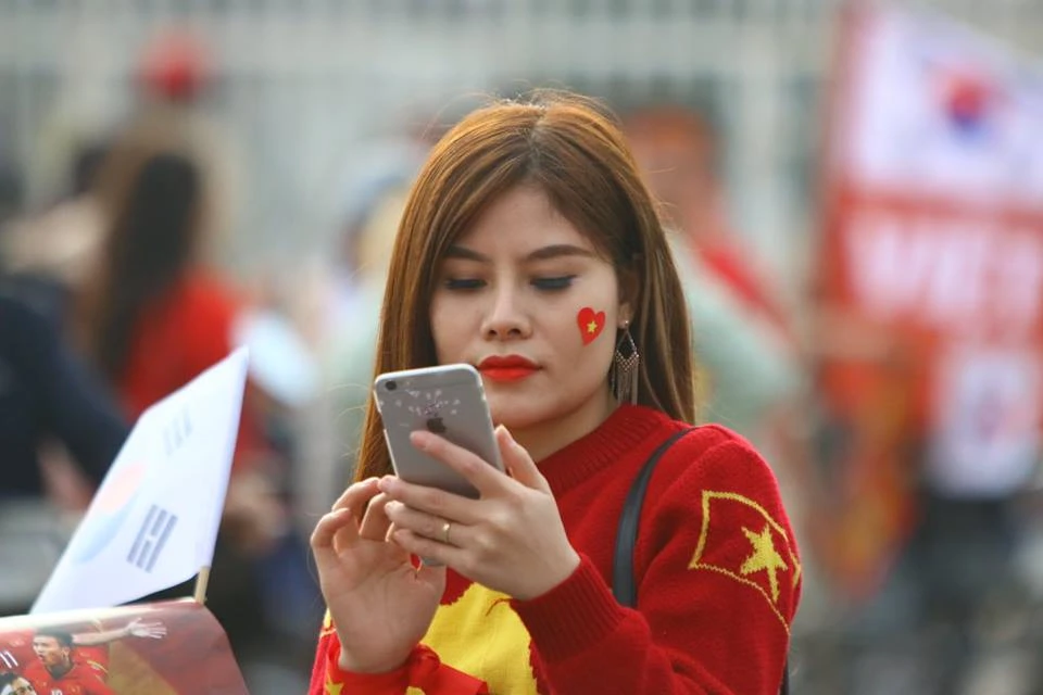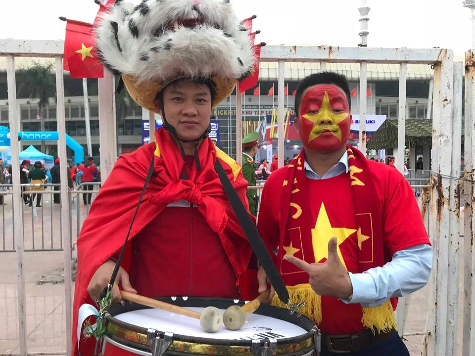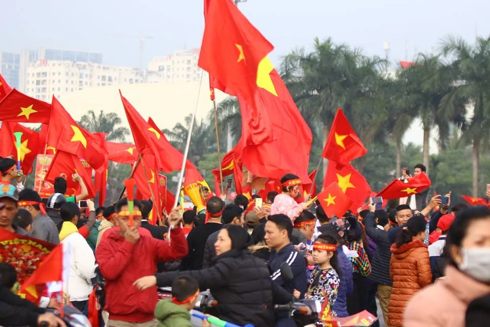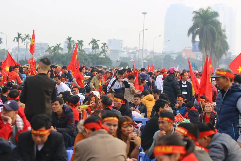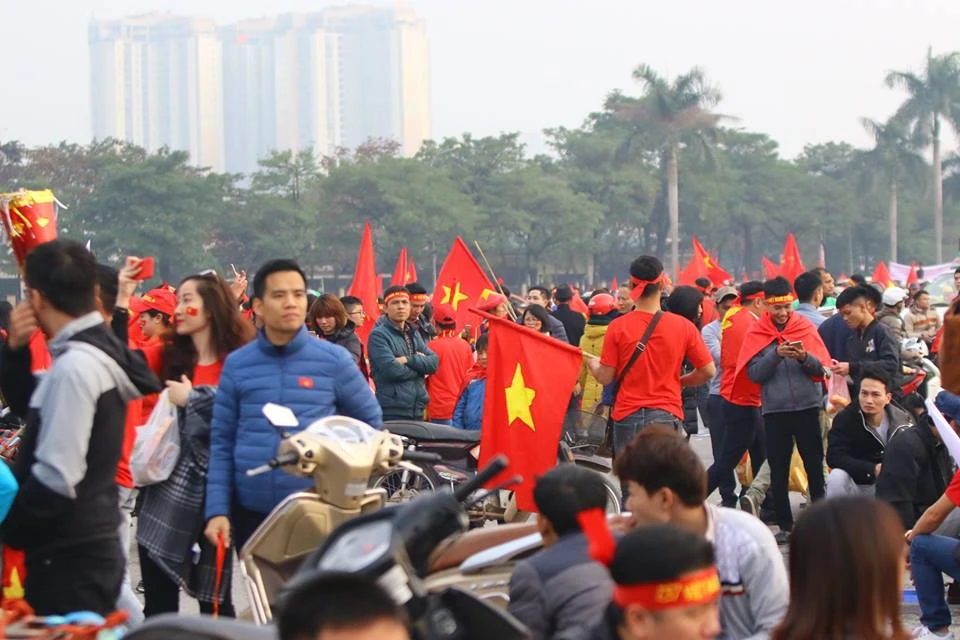Các CĐV Việt Nam "nhuộm đỏ" trước cổng sân Mỹ Đình. Ảnh: CÔNG TUẤN