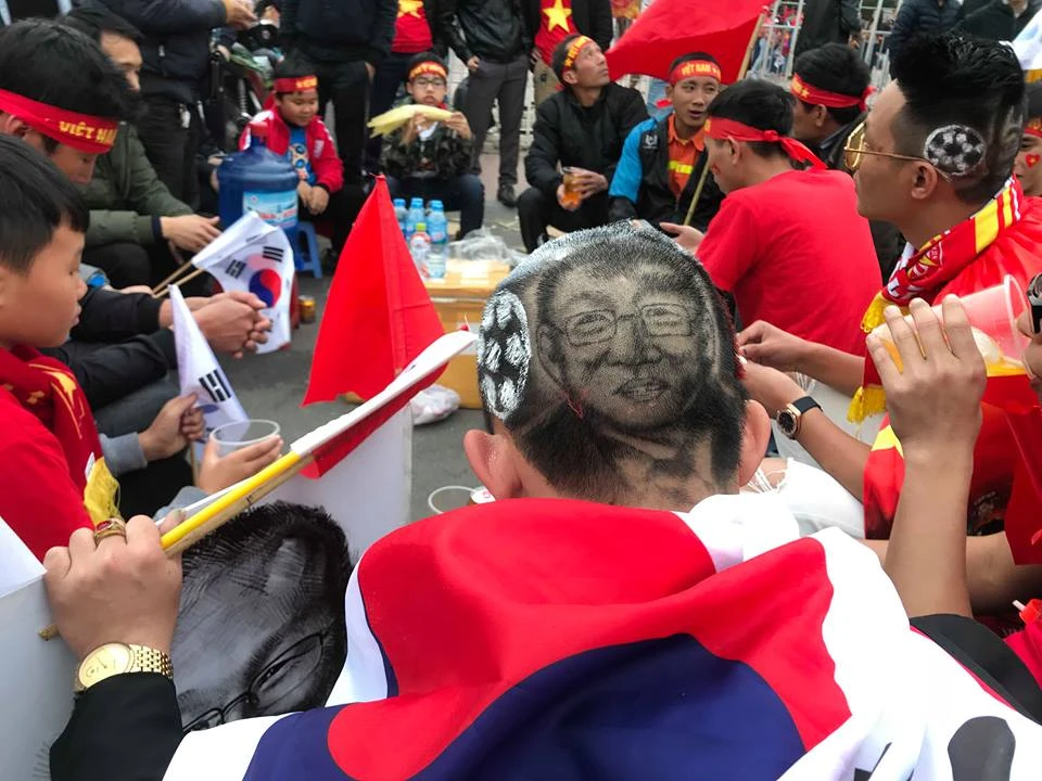 Một CĐV không ngại "họa" hình HLV Park Hang-seo trên đầu.