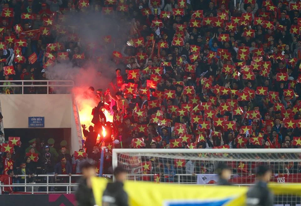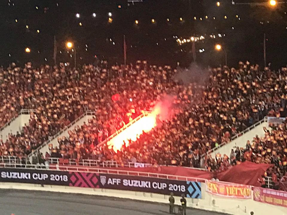Pháo sáng trên khán đài là điều không nên có. Ảnh: TRÂM ANH