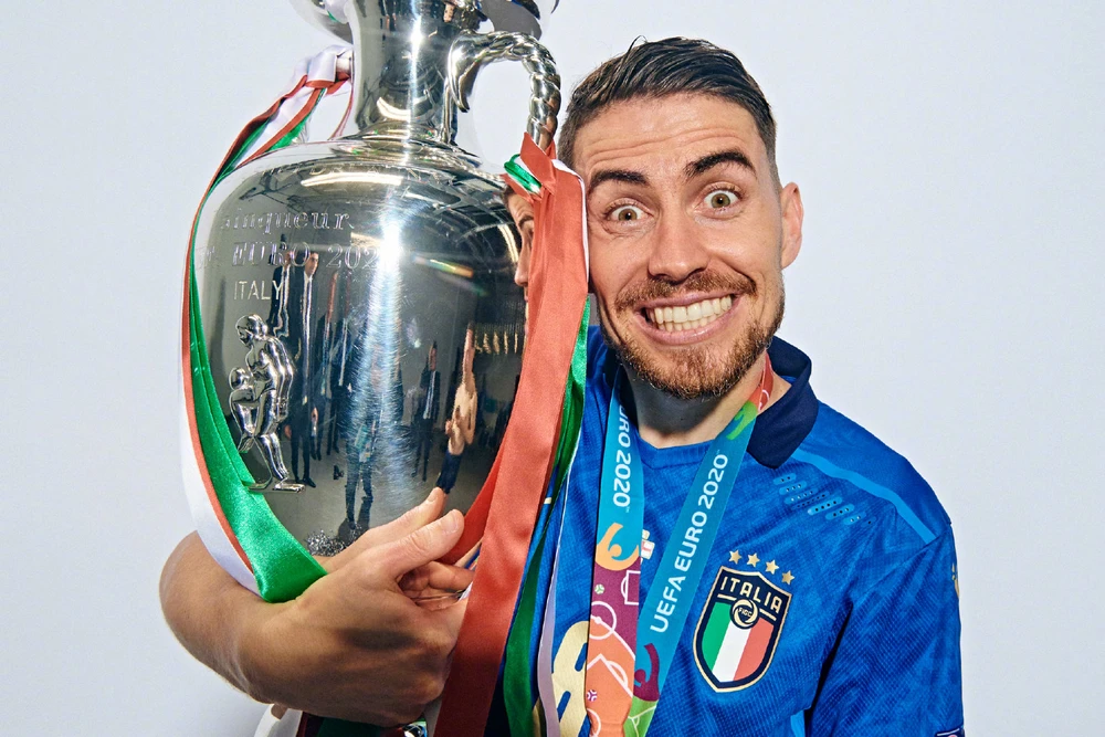 Jorginho hạnh phúc với chiếc cúp vô địch châu Âu trong màu áo tuyển Ý. Ảnh: CGI.