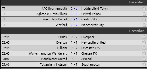 Kết quả một số trận đấu khác, Bournemouth thắng Huddersfield Town 2-1, Brighton & Hove Albion đánh bại Crystal Palace 3-1 và chủ nhà West Ham cũng thắng Cardiff City 3-1.