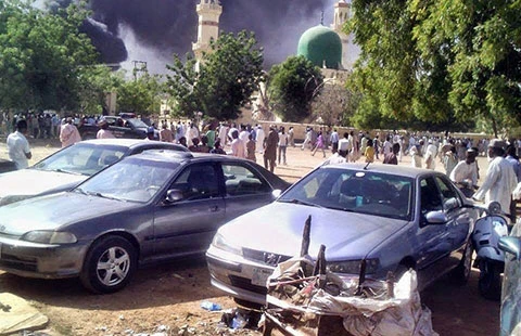 Nổ ở đền thờ lớn Kano ngày 28-11. Ảnh: TWITTER