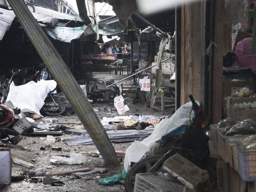 “Nghi phạm đã đặt một quả bom vào chiếc xe máy và đặt cạnh một xe đẩy hàng trong khu chợ. Vụ nổ khiến ba người thiệt mạng và 22 người bị thương” -Pramote Prom-in, người phát ngôn của Bộ Chỉ huy Chiến dịch An ninh Nội địa (ISOC), cho biết.