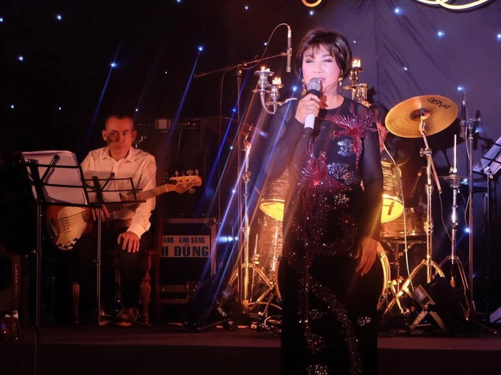Danh ca Lệ Thu trong liveshow của danh ca Khánh Ly tại Đà Lạt vào năm 2016. Ảnh: Q.T