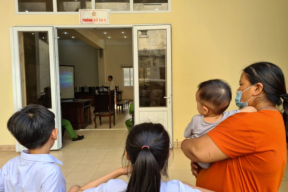 Người nhà của bị hại bên ngoài phòng xử án. Ảnh: LÊ ÁNH