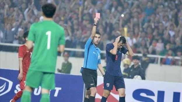 Chiếc thẻ đỏ trọng tài rút ra cho hành động phi thể thao của Supachai.