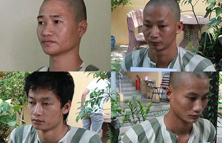 Lê Văn Hiếu, Trần Đức Phú, Trần Đức Dư và Bùi Văn Nguyên, các nghi can không phải là công nhân tham gia vụ gây rối, đốt phá, trộm cắp… Ảnh: NĐ