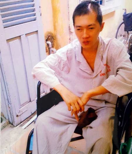 Nạn nhân Lê Nhật Long phải ngồi xe lăn, tàn tật suốt đời khi tuổi còn quá trẻ. Ảnh: P.NAM