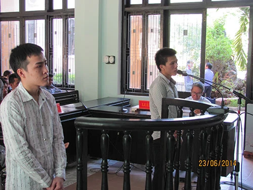 Hai bị cáo trước vành móng ngựa. Ảnh: VIẾT LONG