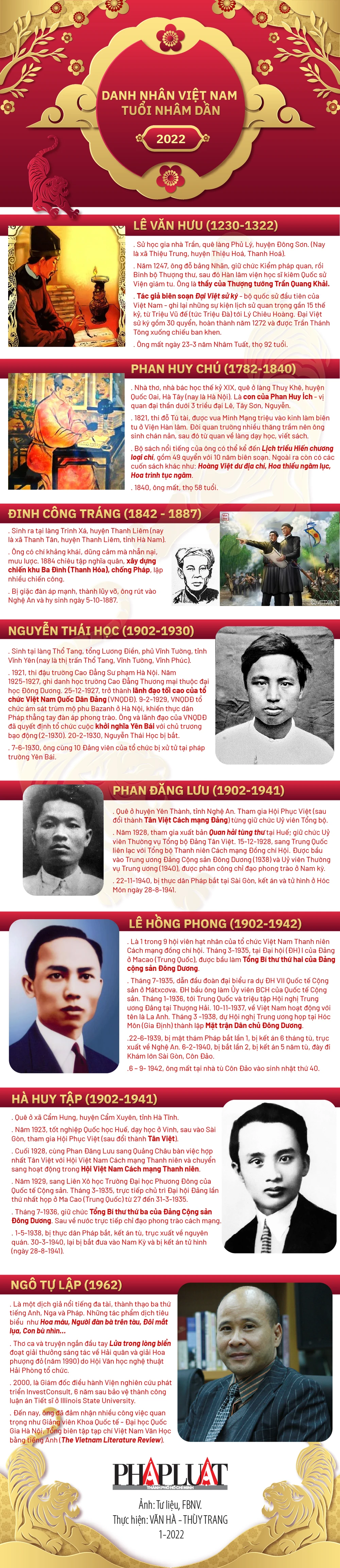 (PLO)- Trong lịch sử hàng ngàn năm đất Việt, nhiều danh nhân nổi tiếng tuổi Nhâm Dần đã để lại cho hậu thế tiếng vang muôn đời trong nhiều lĩnh vực. Nhân dịp tết Nhâm Dần, cùng PLO tìm hiểu về những danh nhân này.