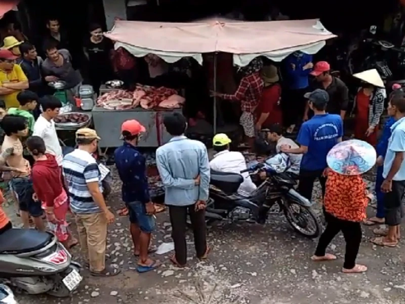 Hiện trường hai thanh niên bị đâm gục tại chợ. Ảnh: VH.