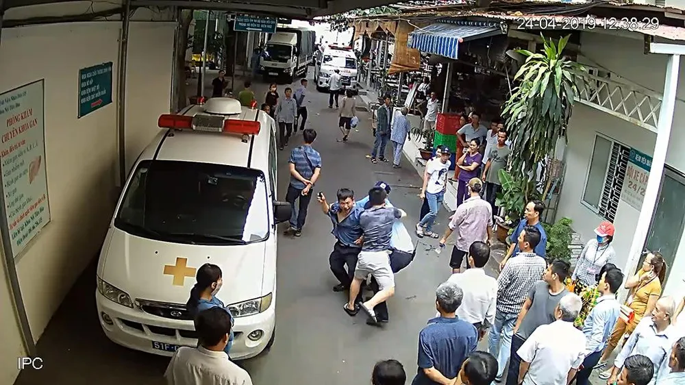 Vụ xô xát khiến 5 bảo vệ của bệnh viện bị thương. Ảnh NT.