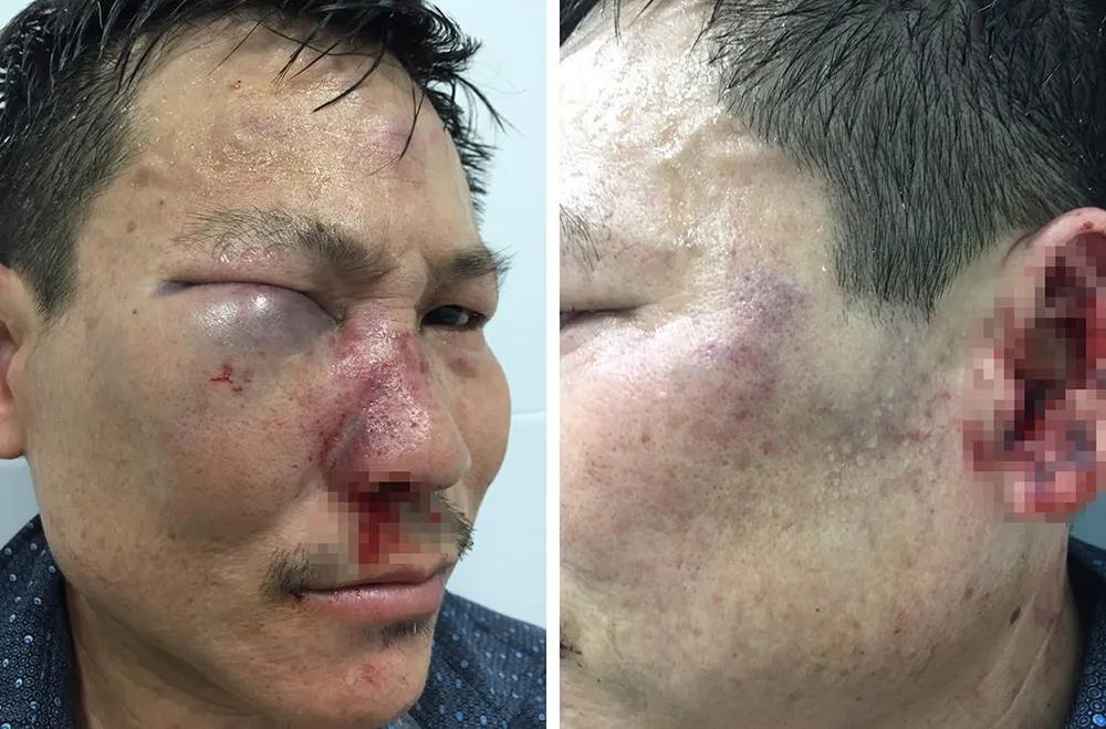 Ông Hưng bị chấn thương ở phần mặt, chảy máu tai sau vụ xô xát. Ảnh nhân vật cung cấp.