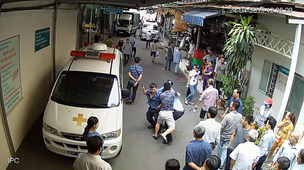 Khi xe vào khuôn viên bệnh viện, ông Hưng cãi nhau với các bảo vệ tại đây. Đánh nhau xảy ra và 6 người bị thương bao gồm cả ông Hưng.