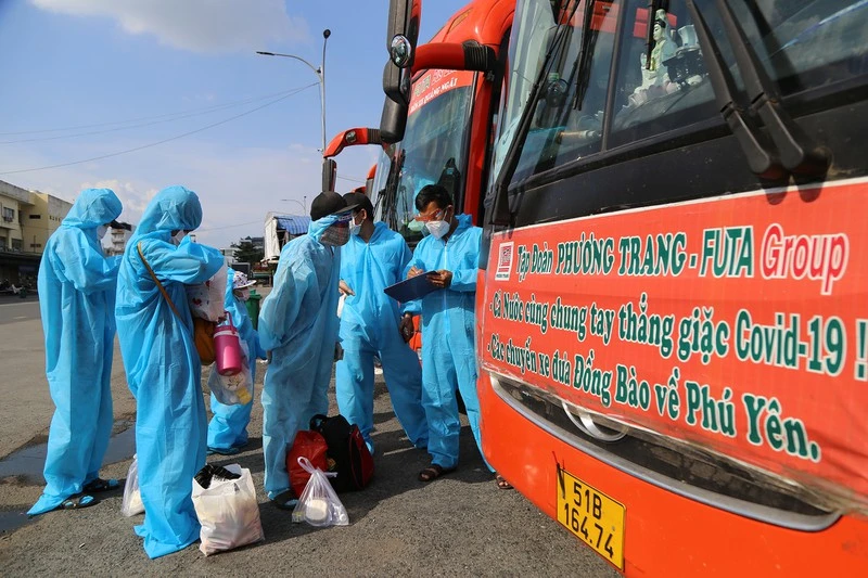 Những người được tỉnh Phú Yên đón về quê đợt 13 có mặt tại cổng số 3 Bến xe Miền Đông (cũ), quận Bình Thạnh, TP.HCM lúc 14 giờ 30 ngày 26-8 để làm thủ tục lên xe, xuất phát lúc 16 giờ 30 cùng ngày. Dự kiến, xe về đến sân vận động TP Tuy Hòa lúc 5 giờ ngày 27-8 để lấy mẫu xét nghiệm, đưa đi cách ly y tế tập trung.