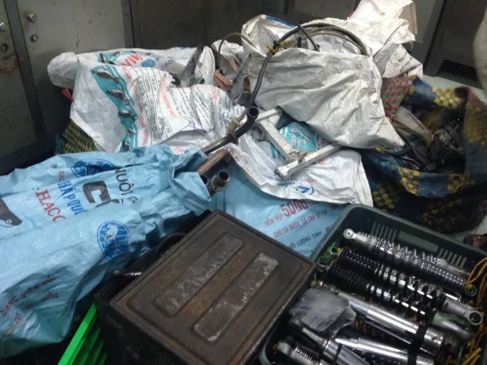Phụ tùng từ một số xe gian nhóm nghi can mua lại rồi phân loại mang đi tiêu thụ