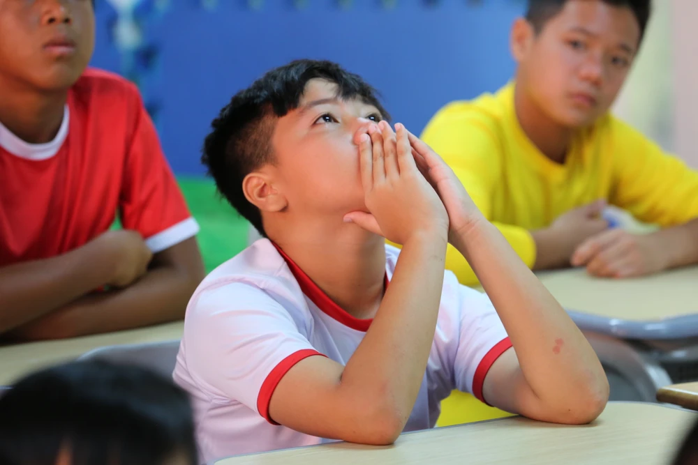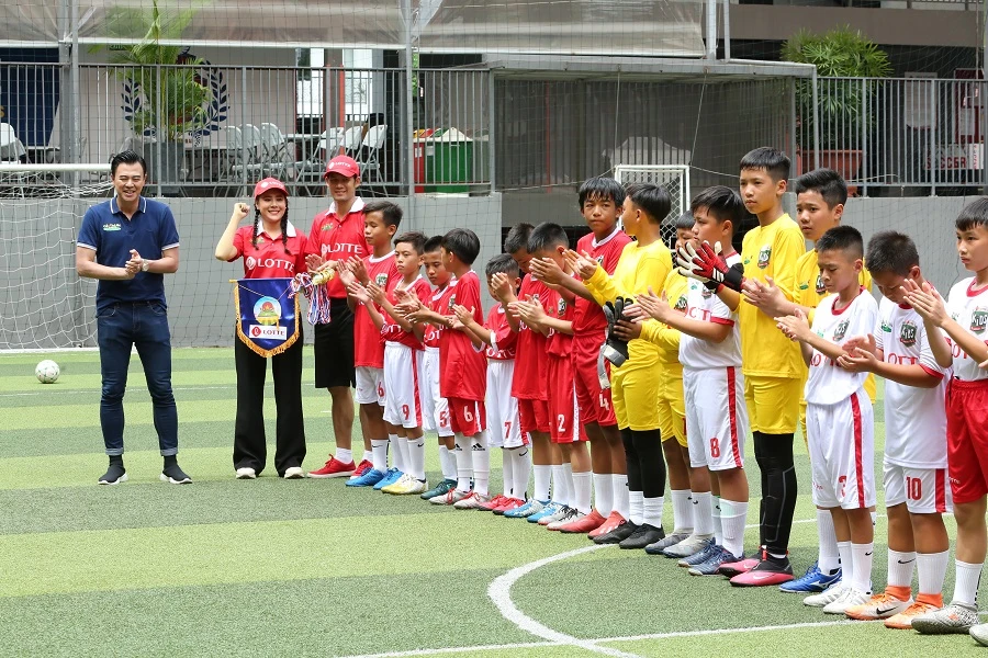 Xuất hiện trên sân bóng là sự cổ vũ nhiệt tình của ca sĩ Hồ Việt Trung, các cầu thủ nhí đã có trận cầu đầy kịch tính với đội tuyển bóng đá nhí của Trường Quốc tế.