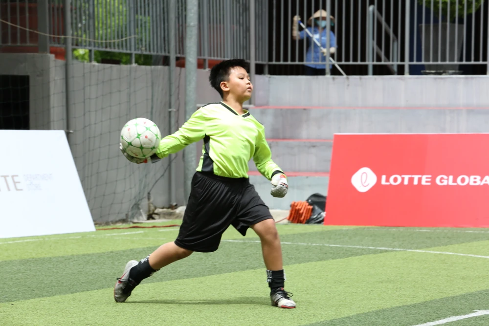 Dù nỗ lực, nhưng đội bóng nhí đến từ trường Quốc tế không thể chọc thủng hàng phòng ngự của đội Cầu thủ nhí 2020.