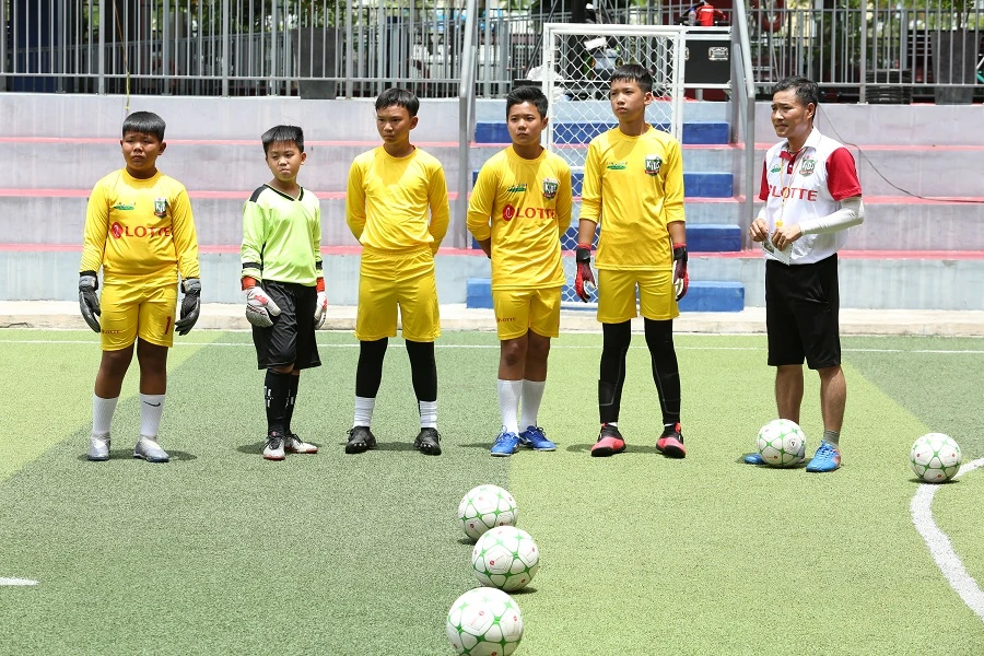 Huấn luyện viên Nguyễn Hồng Sơn liền khích lệ và chỉ ra những điểm yếu để cậu bé đến từ Đồng Nai khắc phục: “Do thể hình của em khá bé và khả năng bắt bóng bổng còn hạn chế.