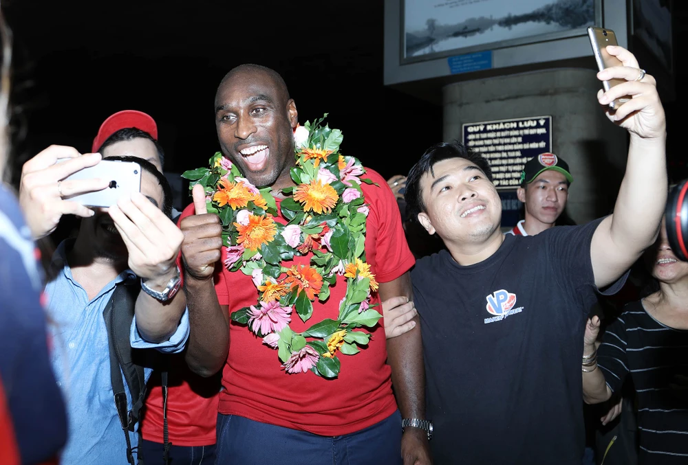 Đông đảo người hâm mộ và truyền thông Việt Nam chào đón Sol Campbell.