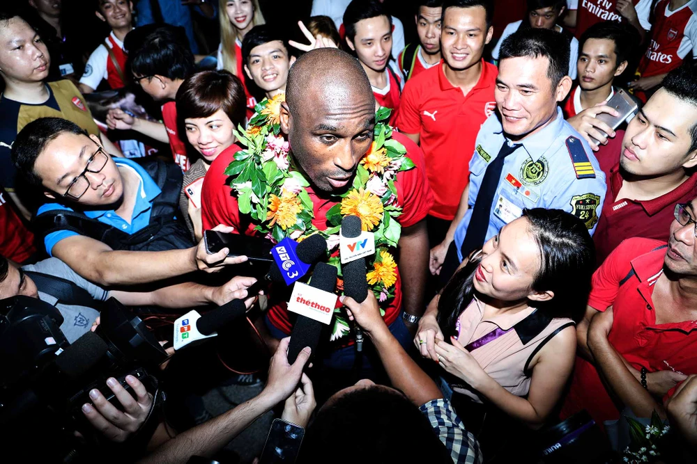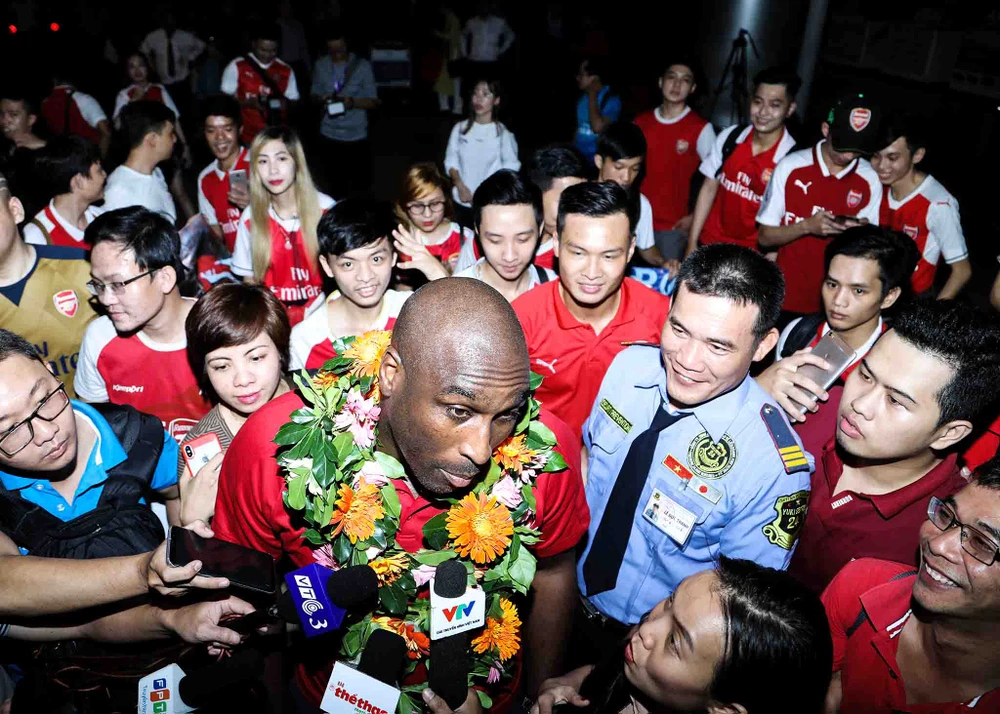 Mặc dù đến trễ hơn so với dự kiến và mệt mỏi sau chuyến bay dài nhưng cựu danh thủ Arsenal rất thân thiện và vui vẻ trò chuyện, chụp ảnh giao lưu cùng người hâm mộ cũng như trả lời các cuộc phỏng vấn của các báo, đài.