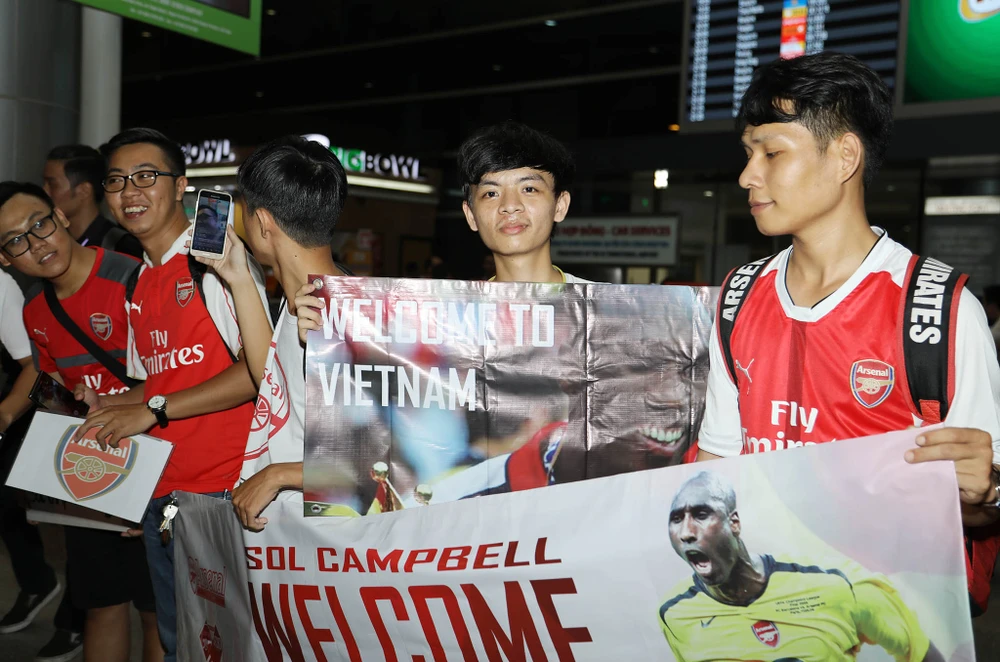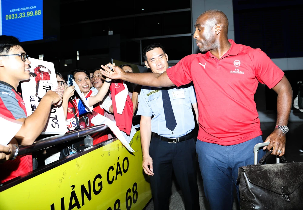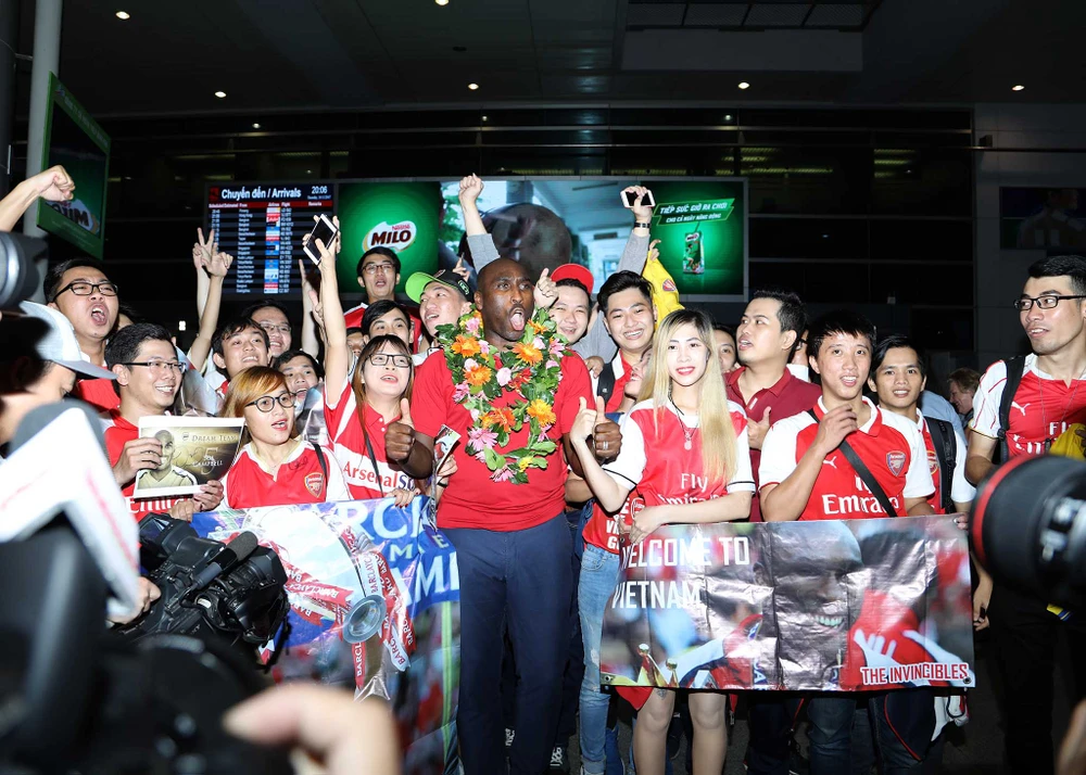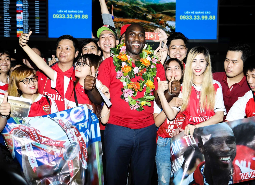 Cựu danh thủ Arsenal xuất hiện, dòng người hâm mộ vỡ òa trong niềm hạnh phúc khi được nhìn tận mắt thần tượng của mình. Họ xúm xít chụp ảnh và xin chữ ký tuyển thủ Sol Campbell sôi nổi.