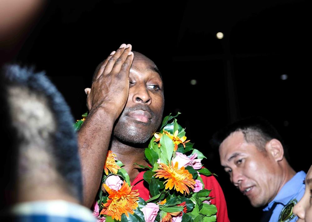 Một số hình ảnh đầu tiên của trung vệ thép Sol Campbell tại sân bay Tân Sơn Nhất (TP.HCM):