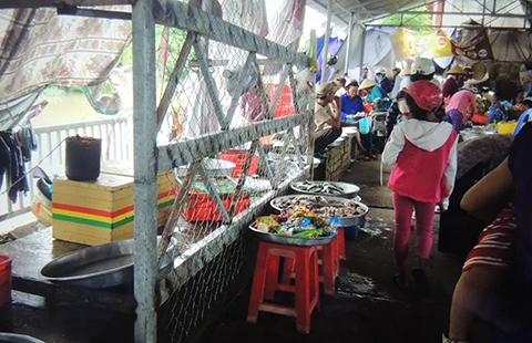 Nơi bán cá của tiểu thương bị chủ đầu tư rào chắn vì không chịu nộp phí. Ảnh: T.PHÚC