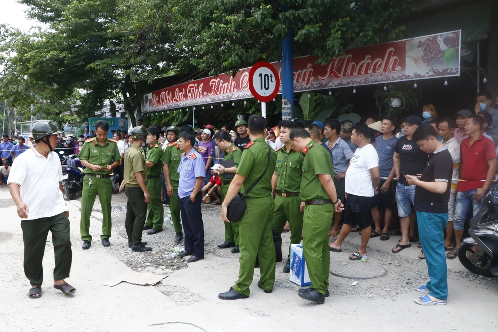 Cơ quan công an khám nghiệm hiện trường. Ảnh: LÊ ÁNH