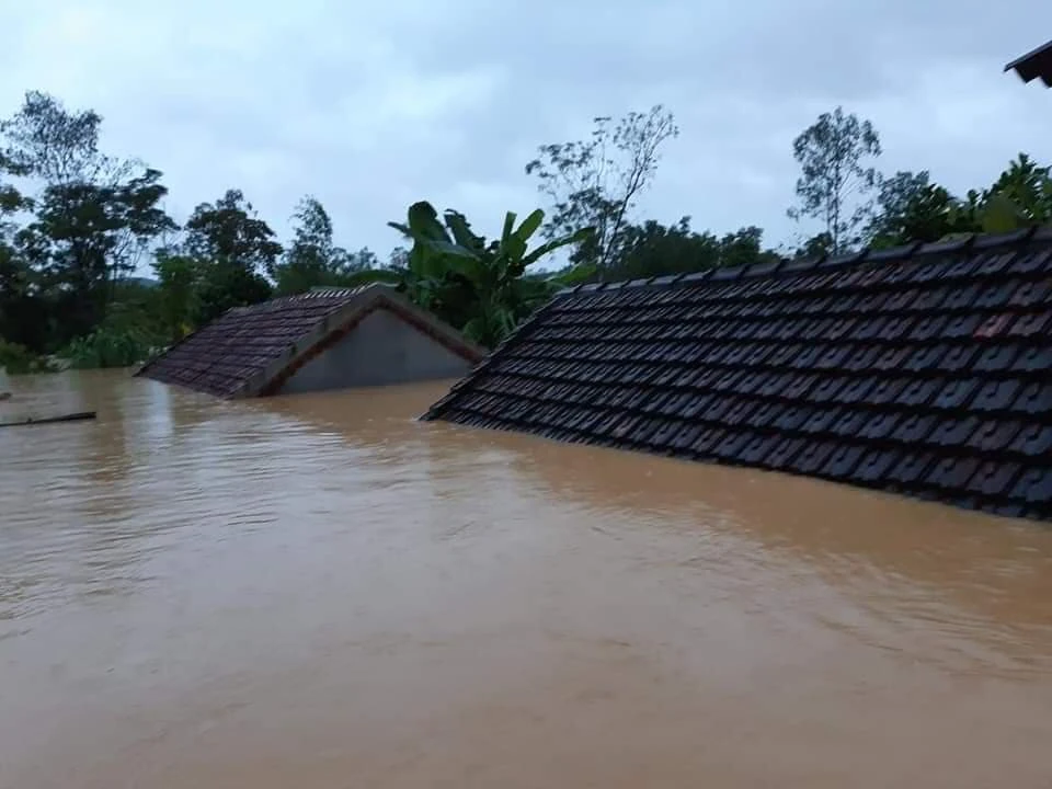 Nhà người dân ở xã Thanh Mỹ (huyện Thanh Chương, Nghệ An) bị ngập sâu. Ảnh: VĂN TỊNH.
