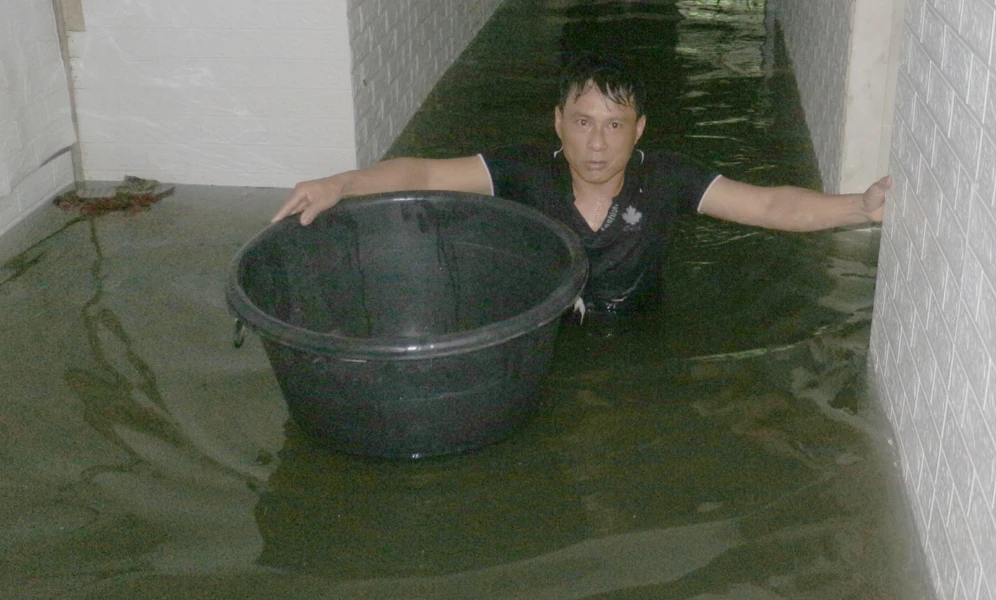 Lũ lên nhanh khiến nhiều người dân ở phường Bến Thủy (TP Vinh, Nghệ An) bị ngập sâu, không kịp trở tay. Ảnh: ĐẮC LAM.