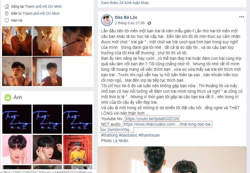 Trên trang cá nhân của mình, ca sĩ Đào Bá Lộc bất ngờ khi trải lòng về lần đầu biết rung động của mình. Đáng ngạc nhiên hơn, đó là khi nam ca sĩ vẫn ở độ tuổi mẫu giáo.