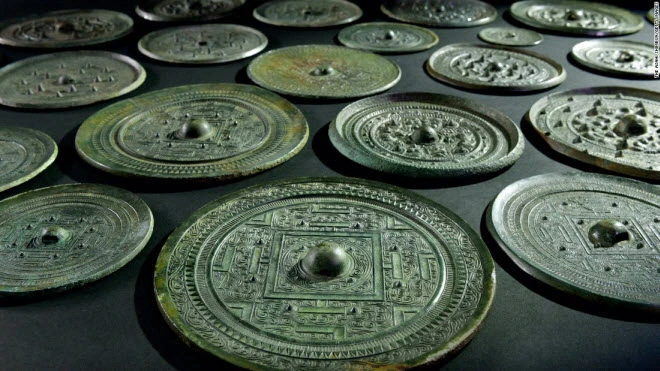 Hòn đảo Okinoshima có nhiều hiện vật chứng minh nơi đây là một trung tâm giao thương quốc tế từ rất sớm. Khoảng 80.000 hiện vật được coi là tài sản quốc gia đã được khai quật trên đảo, bao gồm những chiếc gương của nhà Bắc Ngụy ở Trung Quốc, nhẫn vàng từ bán đảo Triều Tiên và mảnh bát vỡ từ Ba Tư.