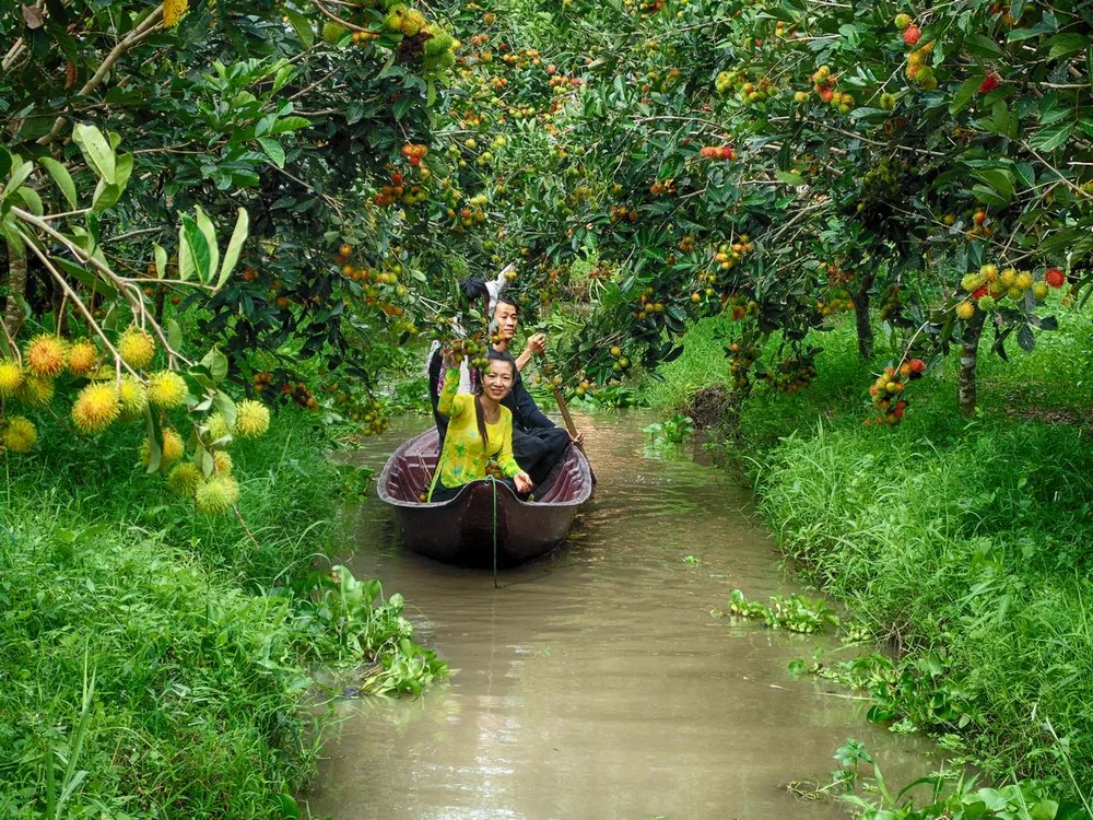 Bơi xuống tham quan vườn trái cây trong khu du lịch Mỹ Khánh (ảnh Trần Kim Đính)