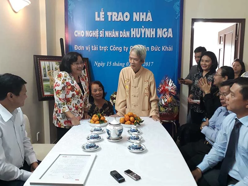 Chiều 15-2, đạo diễn - NSND Huỳnh Nga và gia đình đã đón nhận căn hộ mới do Thành ủy, UBND TP.HCM trao tặng tại chung cư Khánh Hội 1 (quận 4, TP.HCM) trong niềm vui mừng xúc động.