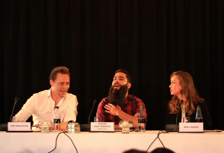 Thành phần đoàn làm phim có tại buổi giao lưu gồm: Đạo diễn Jordan Vogt Robert, nữ diễn viên Brie Larson, tài tử Samuel L. Jackson và ngôi sao Tom Hiddleston.